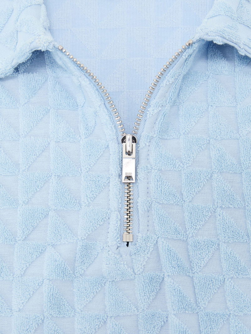 9-13 Yrs Textured Towelling Half-Zip Polo Shirt In Soft Blue
