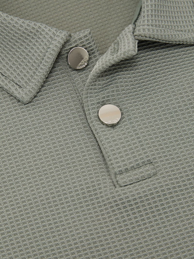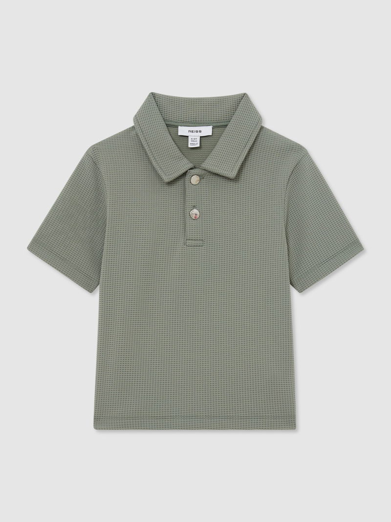 9-13 Yrs Waffle Half-Button Polo Shirt In Sage