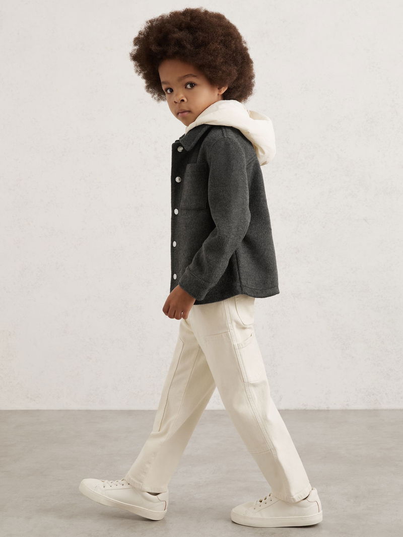 9-13 Yrs Wool-Blend Detachable-Hood Overshirt In Charcoal