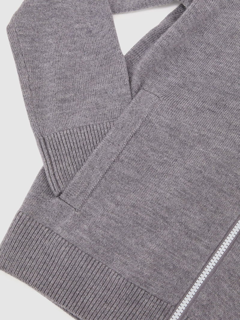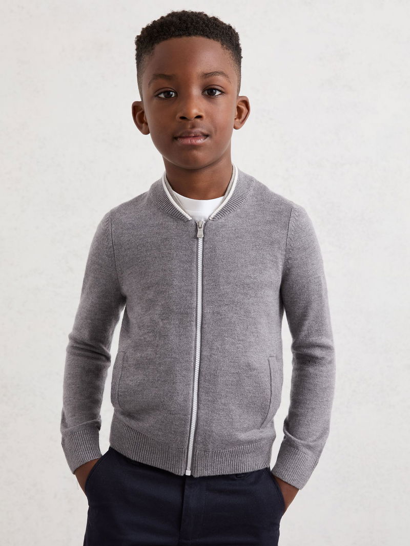 9-13 Yrs Zip-Through Bomber Cardigan With Wool In Grey/White