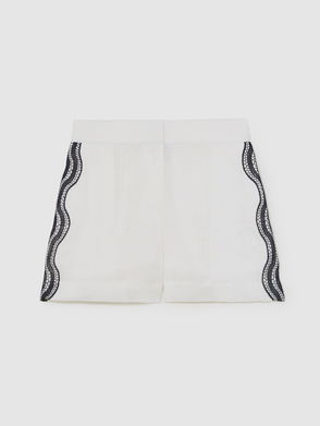 For a summer-ready take on separates styling, look to the April shorts in navy. They're cut from cotton-blend fabrication for a contemporary yet comfortable wear. Style them with a blouse and sandals in warmer climes. Cotton-stretch fabrication.