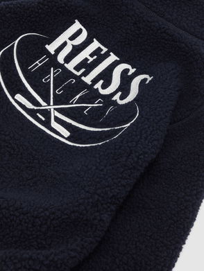 The Navy/ Off White Arkan varsity bomber jacket channels classic collegiate style with bold colour-blocking and textured letter patches—‘Reiss London’ at the back and an ‘R’ at the chest. Striped ribbed trims add a sporty finishing touch.
