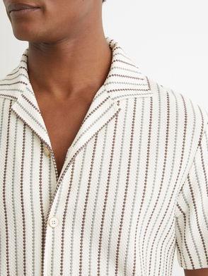 Colour-blocking and a Cuban collar lend a ‘50s-inspired charm to the White/Navy Aster shirt. Crafted from lightweight, breathable cotton, it has a textured finish that adds a refined, tactile quality to its effortless style.