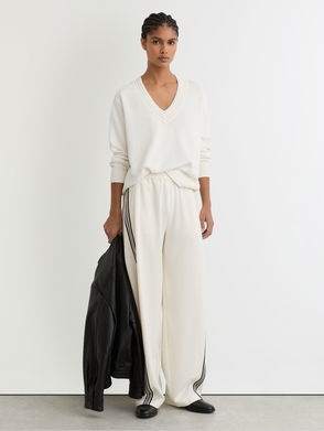 As the temperatures cool, the need for warmer layers and longer sleeves increases. The Astrid jumper is cream is knitted with dropped shoulders to an oversized fit, making it super-comfy and snug. It’s then adorned with blue-hued stripes for added interest. Style with jeans and boots for a cosy off-duty look.