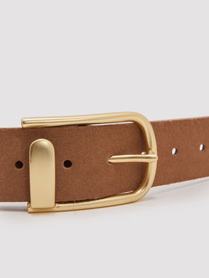 The Bailey belt in taupe embraces influences from the American West in an updated mood, fitted with a gold-tone metal buckle in a double horseshoe shape.