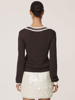 Bead-Detail Asymmetric Knit Jumper In Black/White