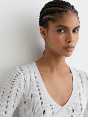 The Courtney jumper is crafted from a textured knit with a contrasting V-neckline, embellished with shimmering bugle beads. Long sleeves with contrasting cuffs bring a refined finish.
