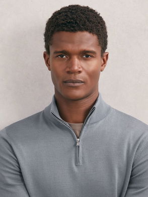 Crafted from fine merino wool, the Blackhall zip-neck jumper in navy offers a luxuriously soft feel and lightweight wear. Layer beneath a dark grey suit and finish your look with black sneakers for a contemporary tailored outfit.