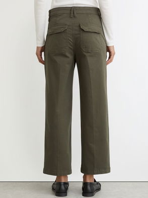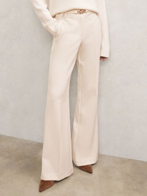 The Bleeker trousers in cream are a new smart-casual style, featuring a front pleat and cargo-pocket detailing. They are cut to sit on the waist while the leg tapers to finish at the ankle. Wear with a T-shirt, blazer and heels for an attitudinal aesthetic.
