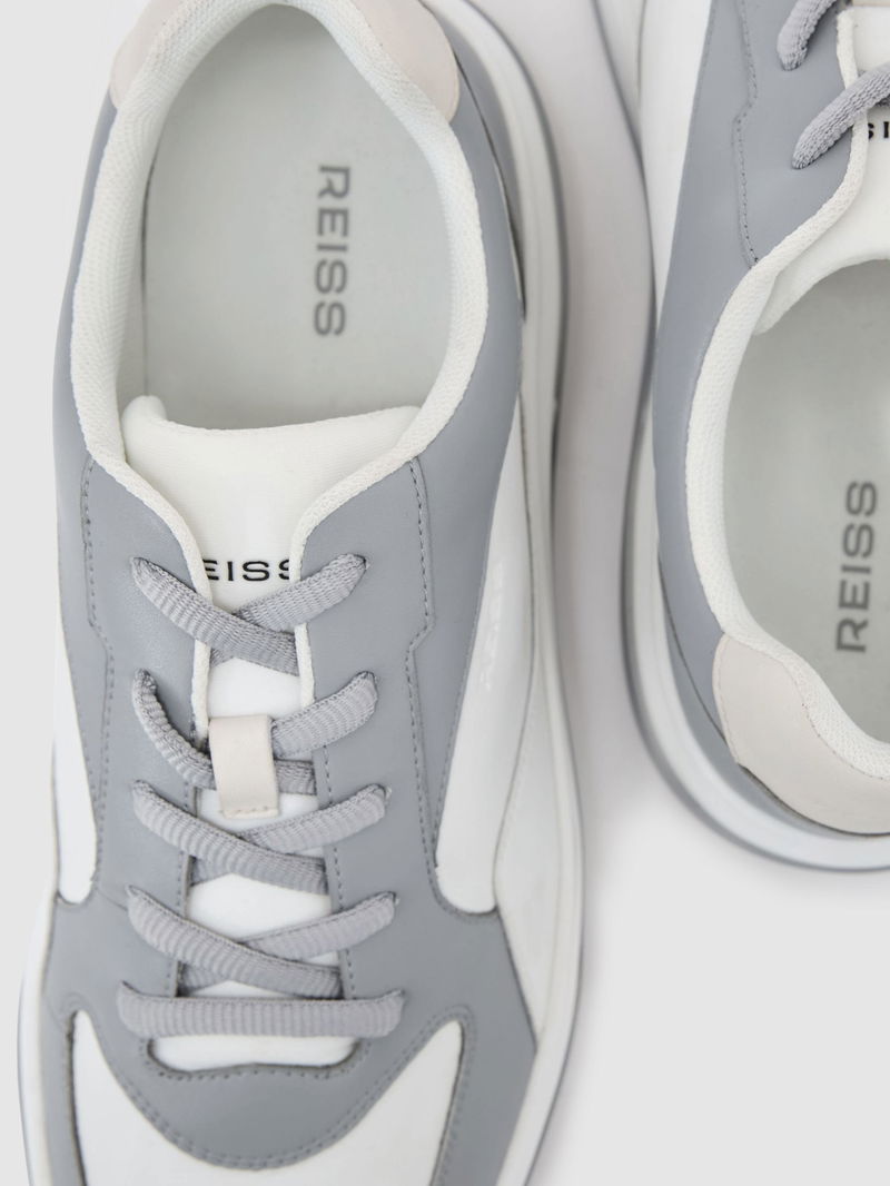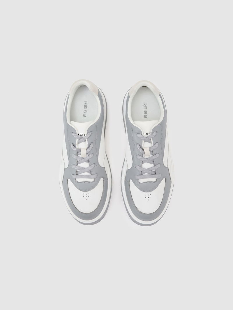 The Cast trainers are crafted from smooth bonded leather with contrasting panels and logo stamps on the heel, side, and tongue. They lace up at the front and sit atop a contrasting chunky sole. Bonded leather. Contrasting panels. Logo stamps. Padded collar. Lace-up front. Contrasting chunky sole.