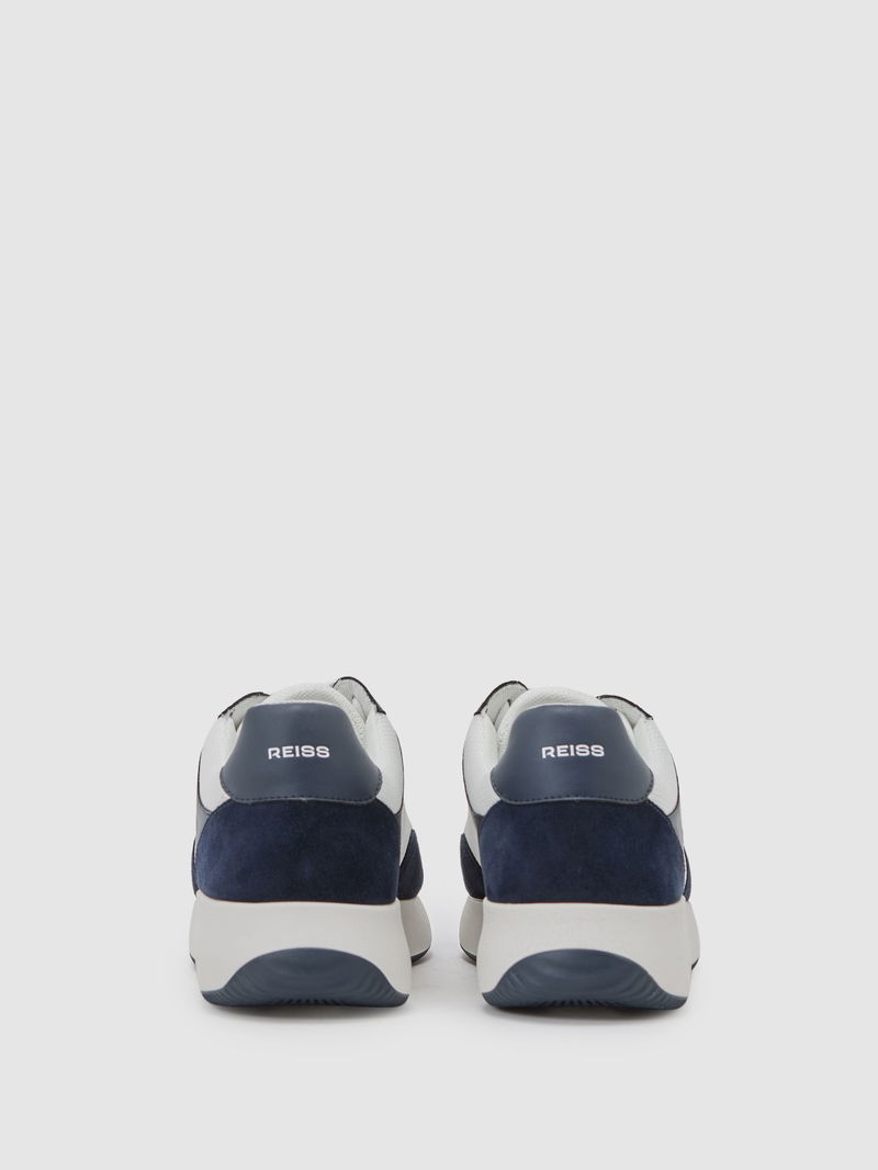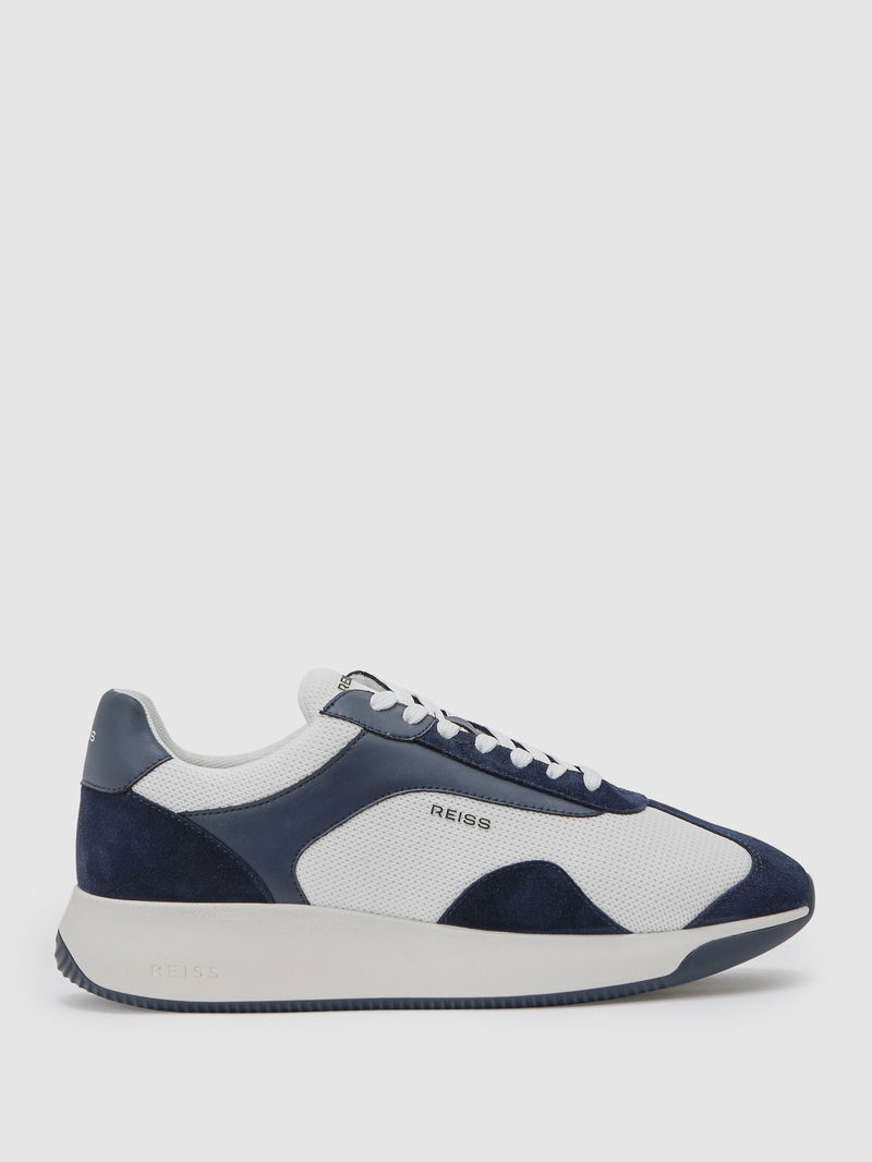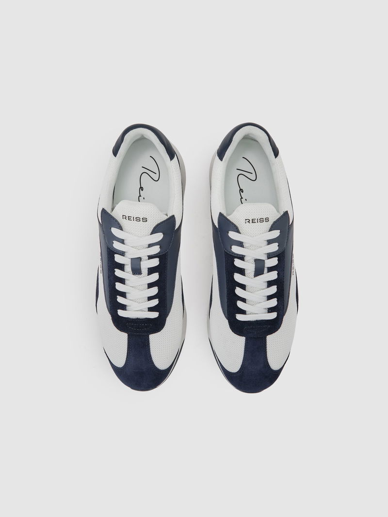 Bonded-Leather Suede Running Trainers In Navy/White