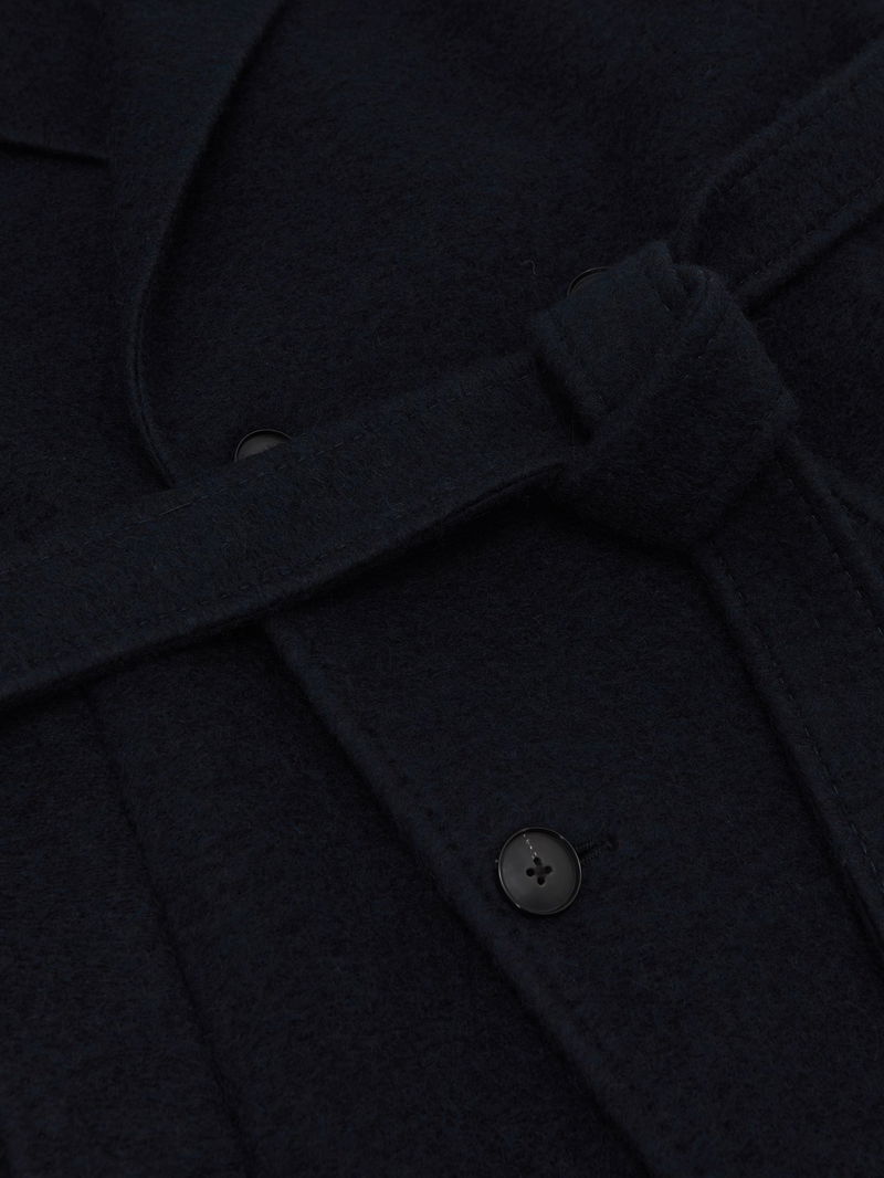 Bouclé Double-Breasted Overcoat Wool-Blend In Navy
