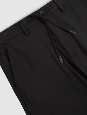 The navy Brighton trousers are a smart-casual style, featuring a front pleat and jogger-style waistband with an internal drawstring. They taper through the legs in a relaxed fit and they finish with a rolled hem. Wear with a T-shirt and trainers for an attitudinal aesthetic.