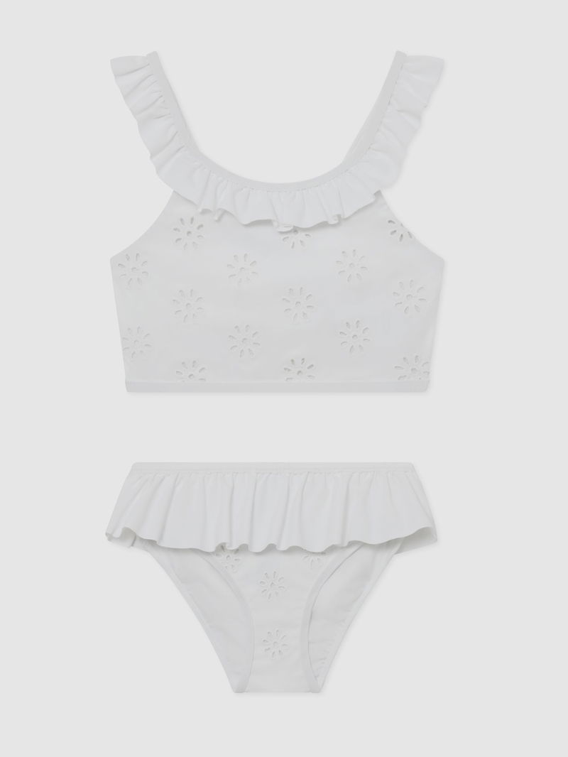 Broderie Peplum Bikini Set In White