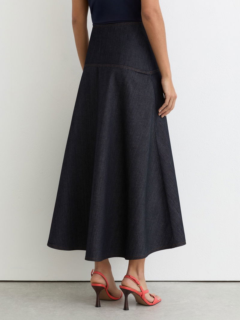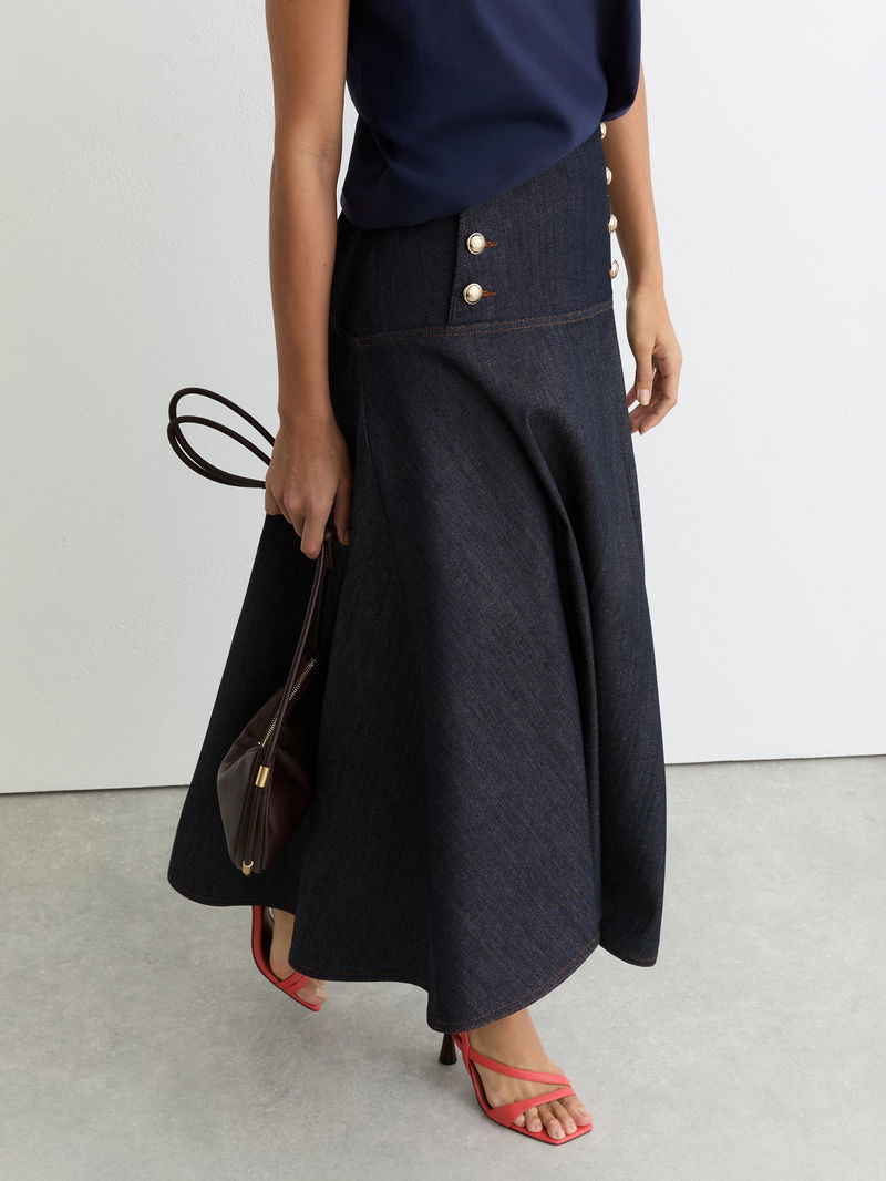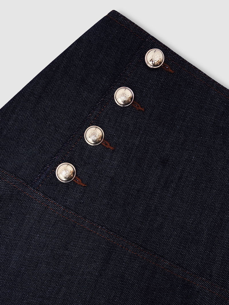 Button-Detail Denim Midi Skirt In Dark Blue