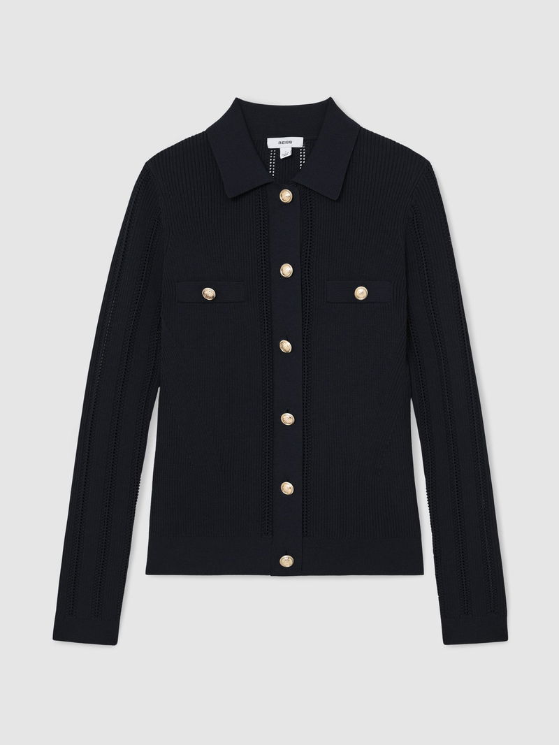 Button-Through Knitted Top With Collar In Navy