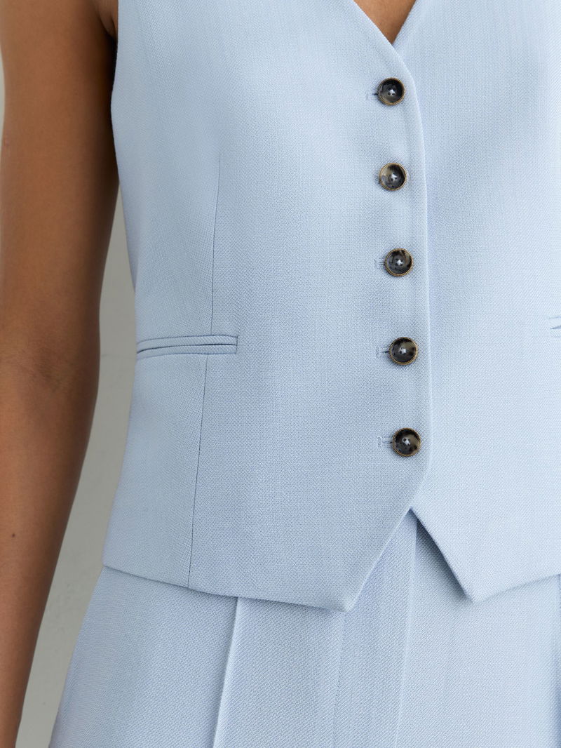 Button-Through Tailored Waistcoat In Blue