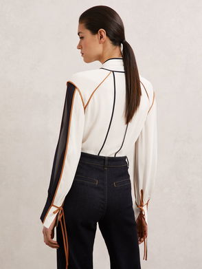 The Carlie blouse in cream is a chic day-to-night option for spring. This striped design features a grandad neckline and shirt-style button cuffs at the sleeve. Pair the fluid shape with slim-fit trousers and trainers for an easy daytime look.