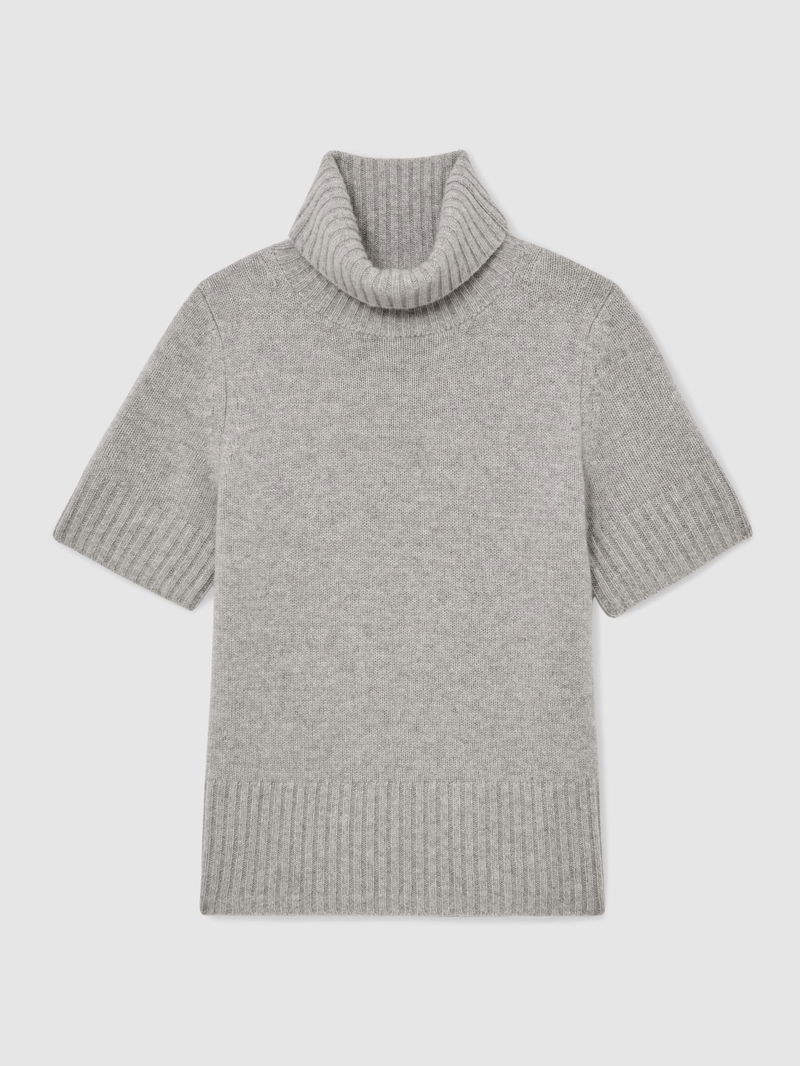 Cashmere Short-Sleeve Roll-Neck Jumper In Grey Marl