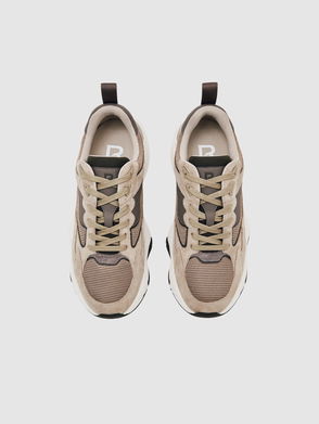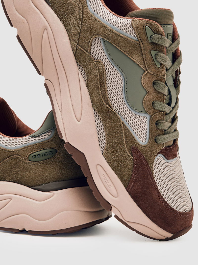 Chunky-Sole Panelled Runner Trainers In Brown/Khaki Green