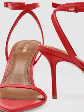 The Clara sandals are expertly crafted from smooth leather, featuring elegant interlinked straps that create a modern, sculptural silhouette. Contrast binding accentuates the curves of one strap, emphasising the fluid, sinuous lines.