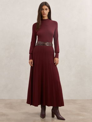 Elegant accordion pleats through the skirt and sleeves bring fluid movement to the Tori dress, crafted from lightweight crepe. Contrasting stripes offer bold definition to the design, echoing the subtle shoulder piping and the reverse of the belt.