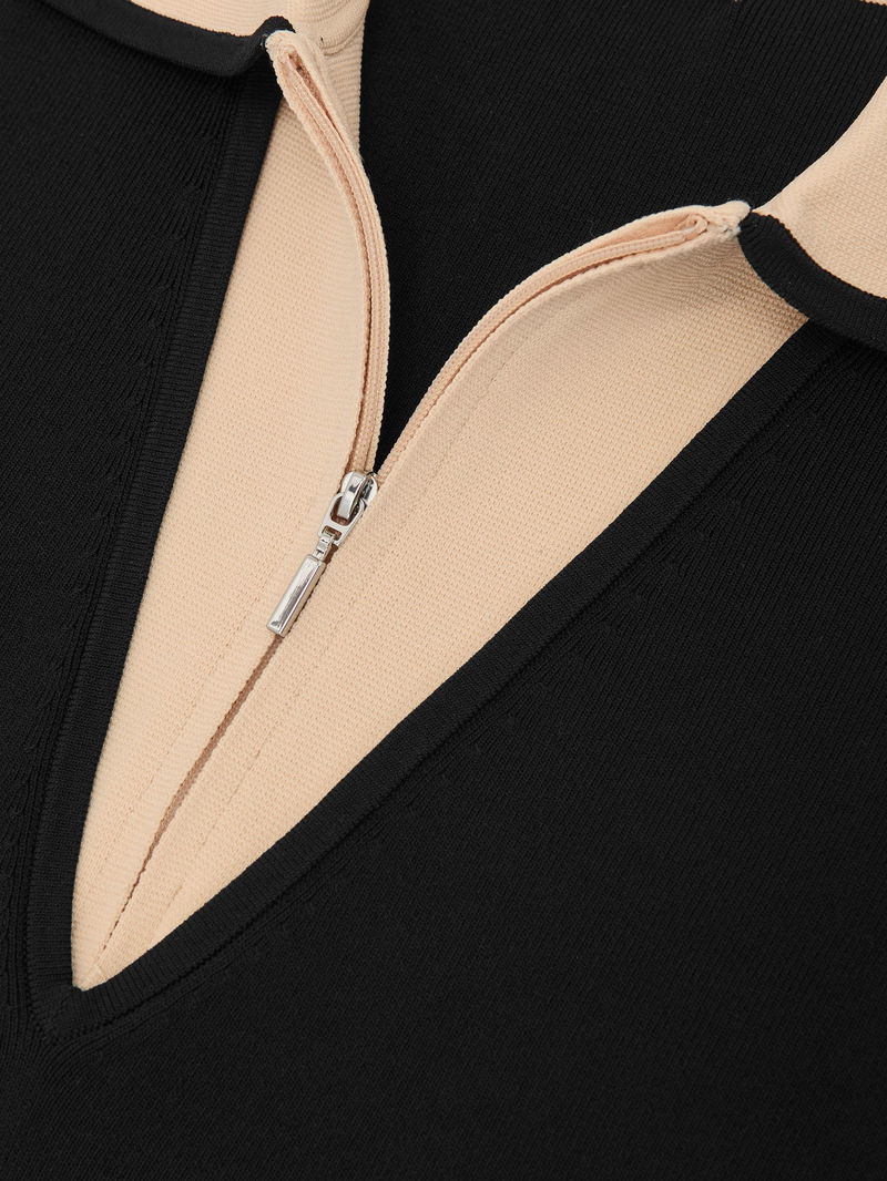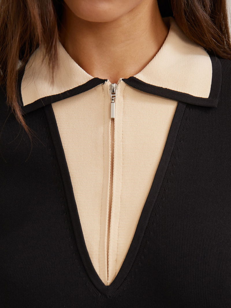 Contrast-Collar Knitted Mini Dress In Black/Ivory