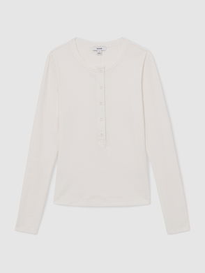 The Eva knit top is cut to a slim fit, with a hint of stretch for comfort. A high neckline and long cuffed sleeves create a sophisticated feel, elevated by contrast stitching and metal buttons at the placket opening and pockets.