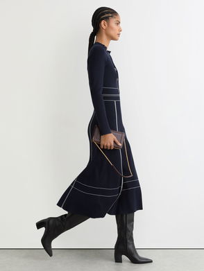 Contrast-Stitch Knitted Midi Dress In Khaki Green