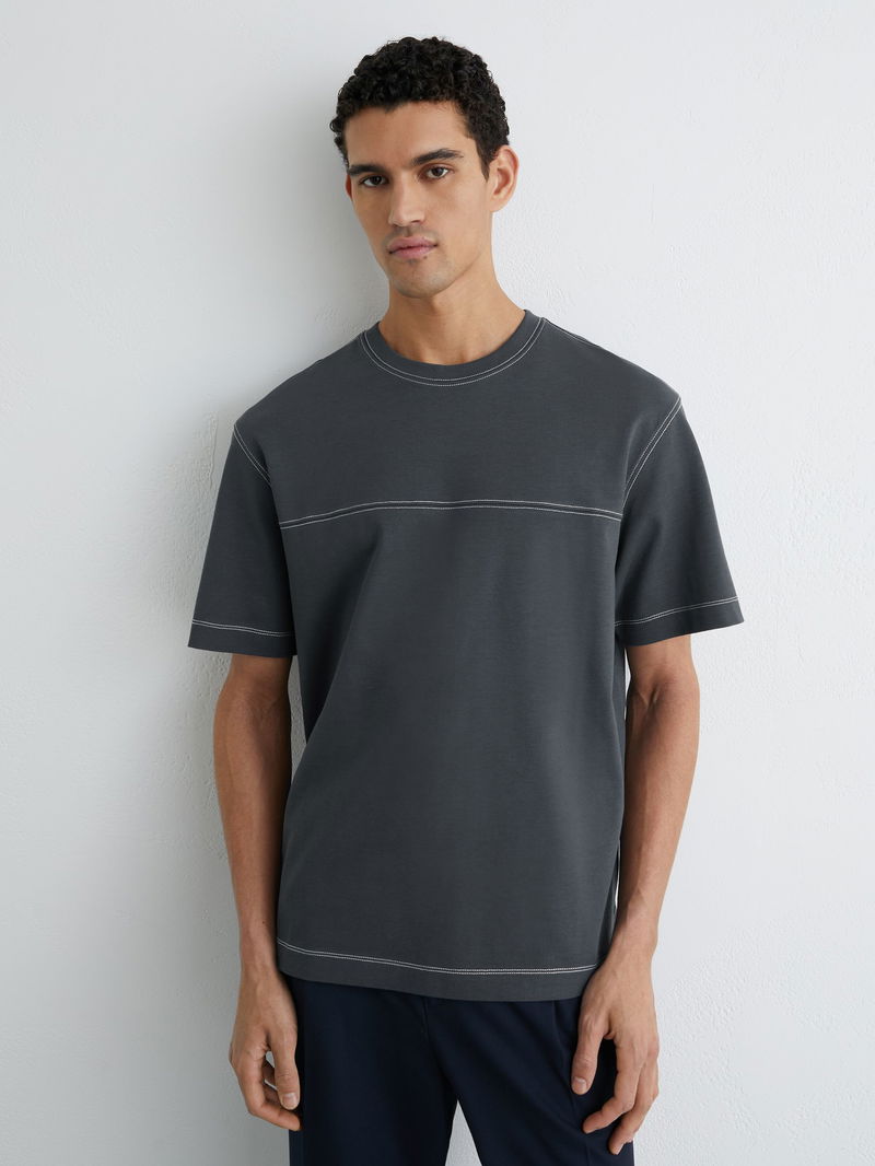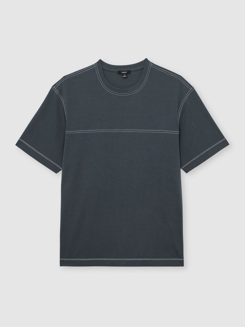 Contrast-Stitch Relaxed-Fit T-Shirt In Petrol Blue