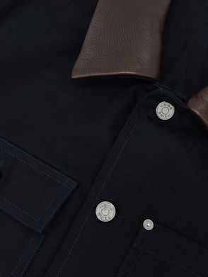 Crafted from cotton denim, the Marks worker-style jacket balances industrial edge with a modern style. A contrasting corduroy collar lends tactile interest, while practical patch pockets underscore its utilitarian character. 100% cotton denim Corduroy collar Three patch pockets Single internal patch pocket Button cuffs Front buttons placket.