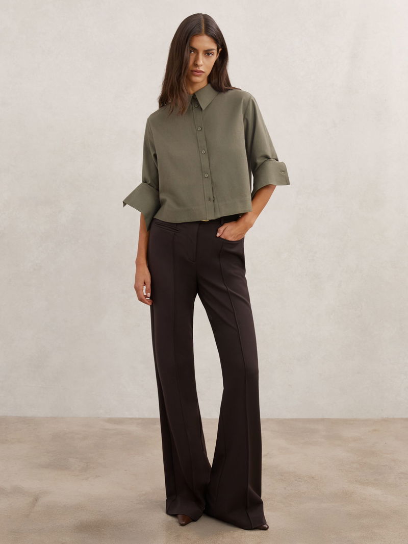 Cotton And Wool Cropped Shirt In Khaki Green