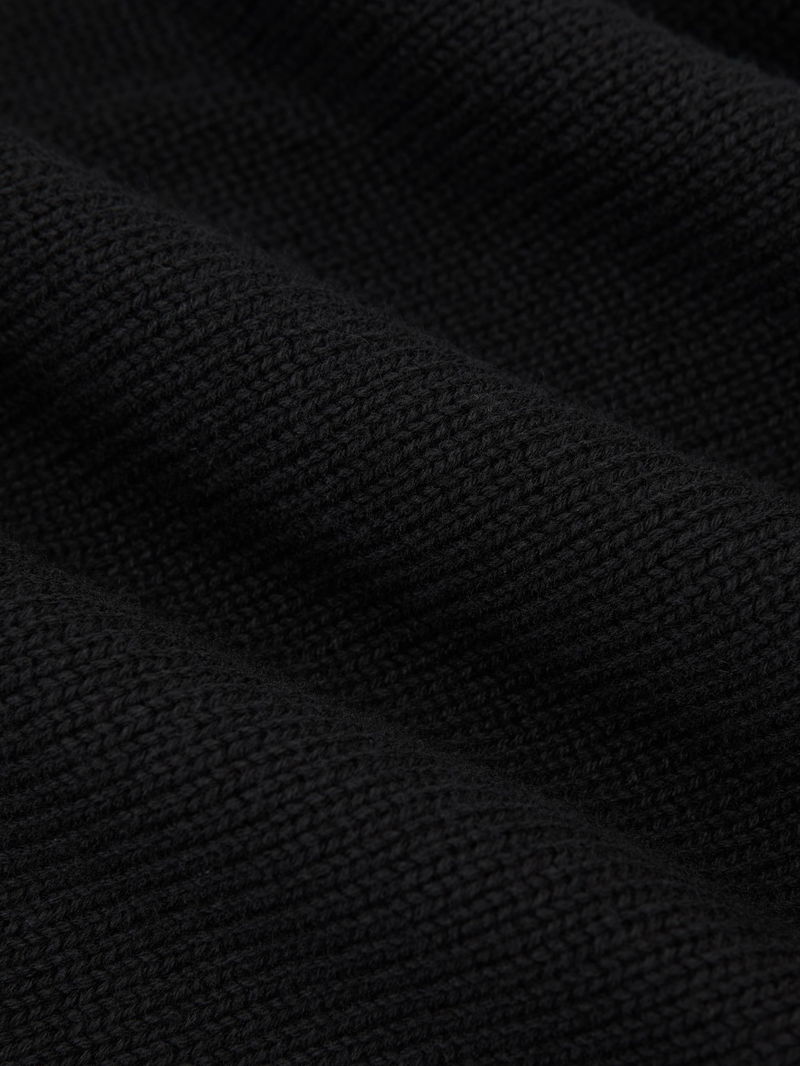 Cotton And Wool Funnel-Neck Knit Top In Black