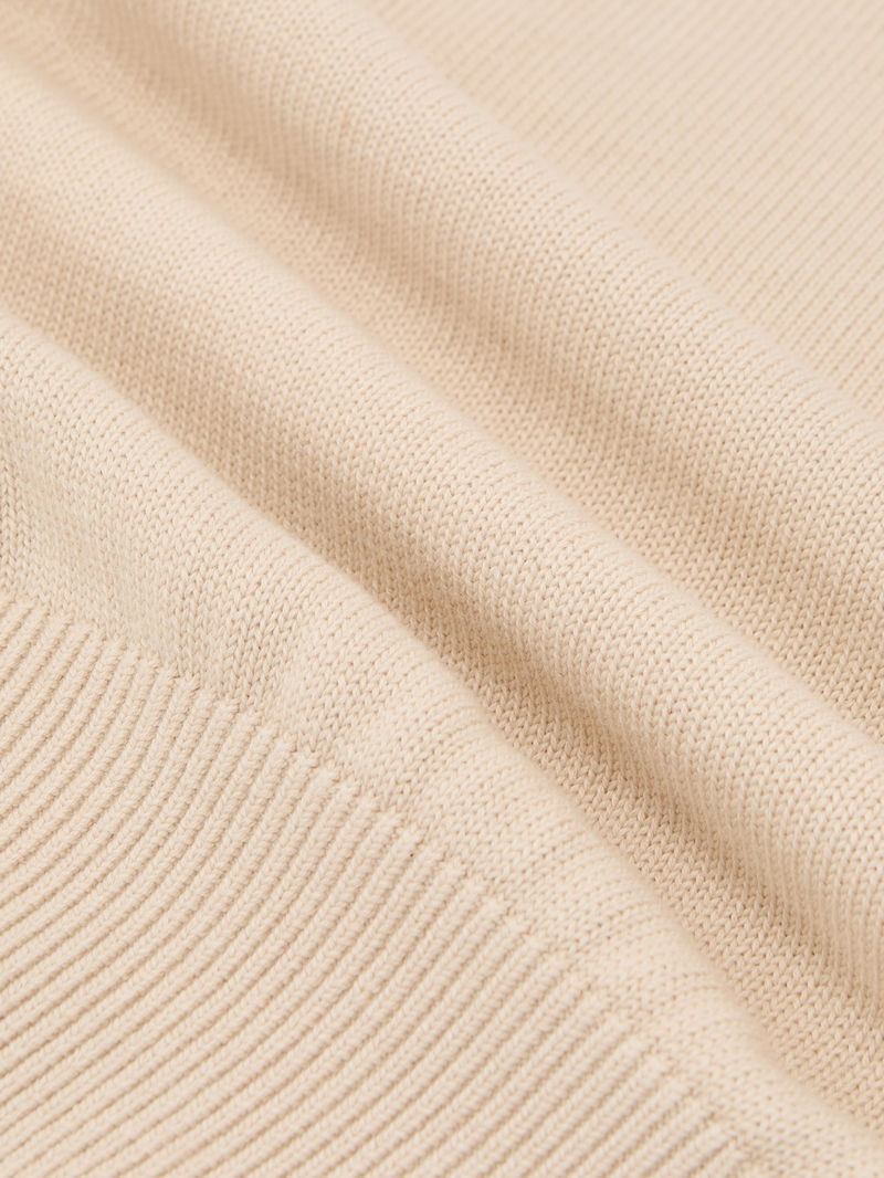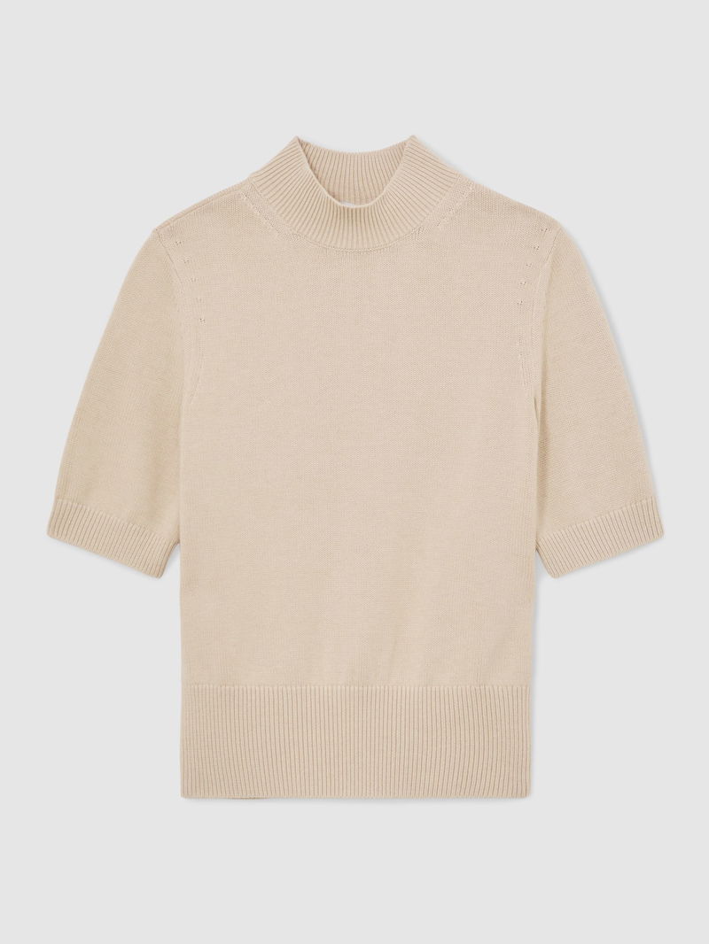 Cotton And Wool Funnel-Neck Knit Top In Neutral