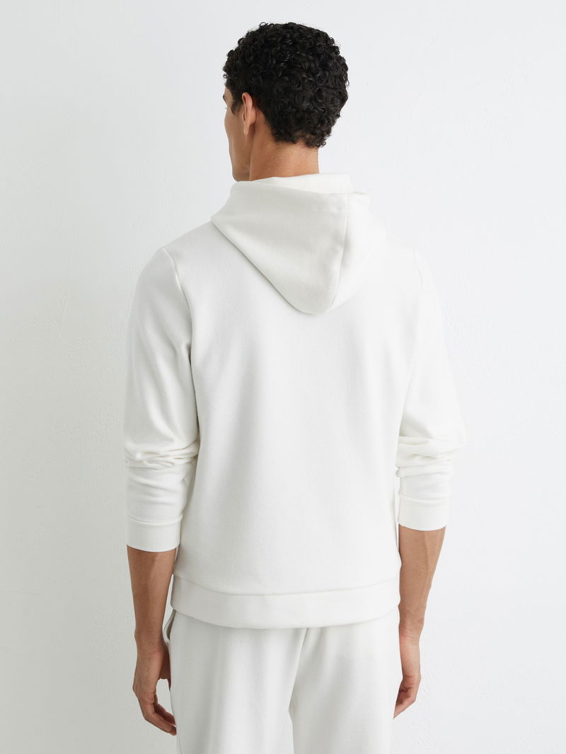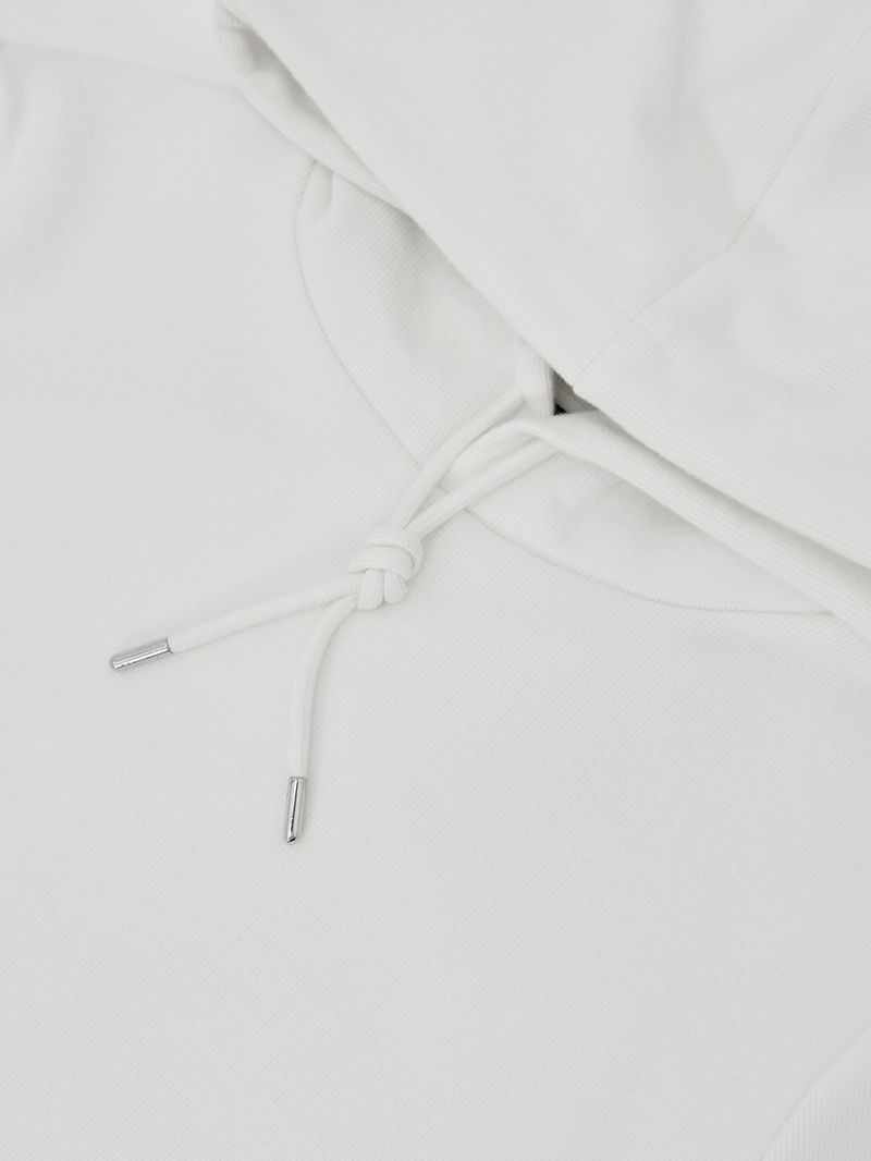 Cotton-Blend Brushed Ribbed Hoodie In White