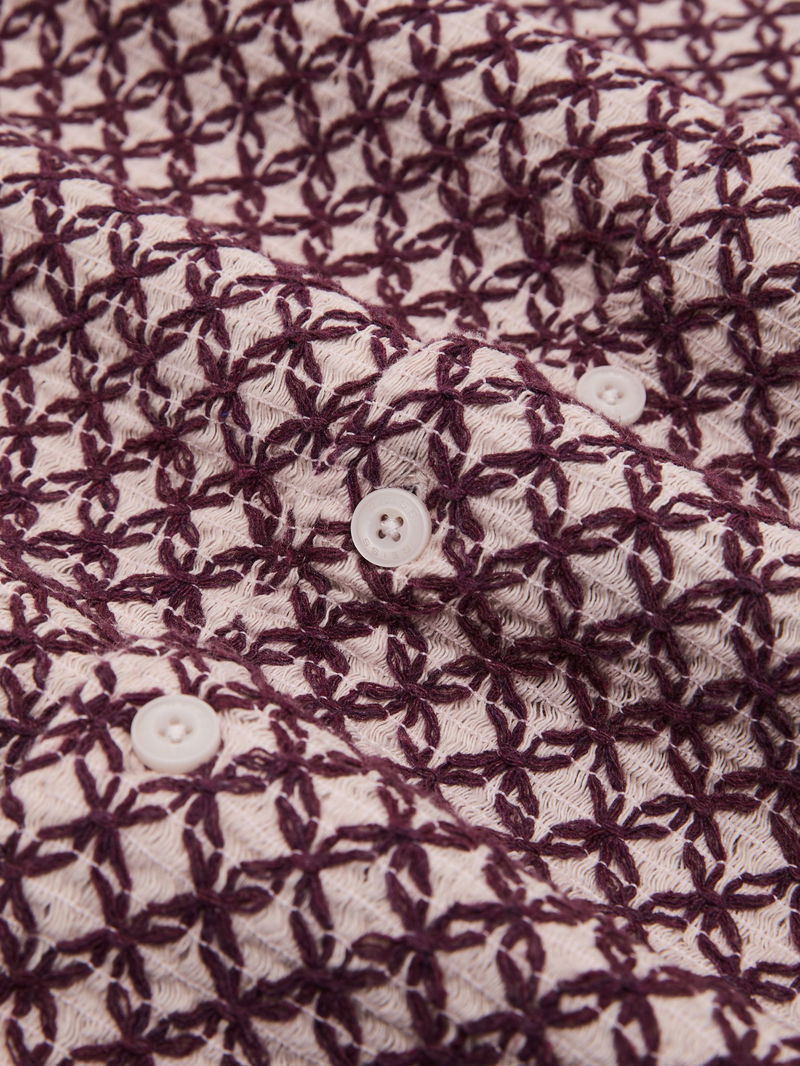 Cotton-Blend Embroidered Crochet Shirt In Rust Red