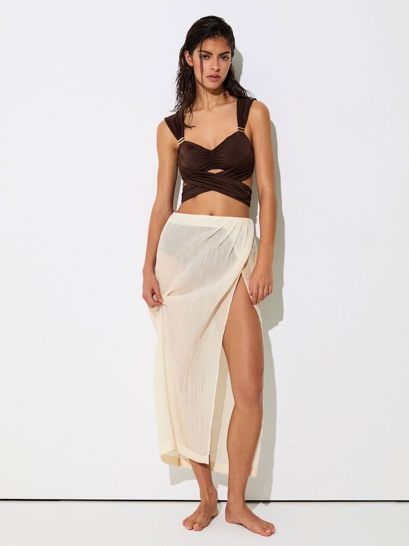 Cotton-Blend Gauze Wrap Beach Skirt In Neutral