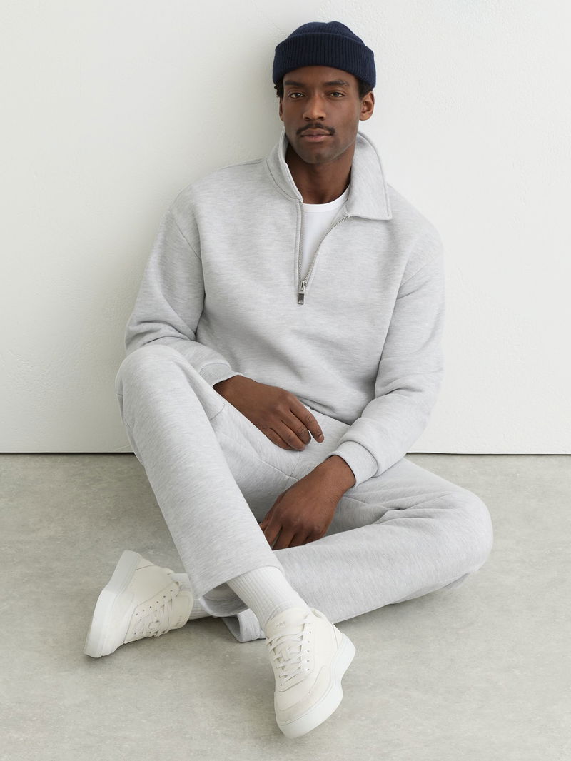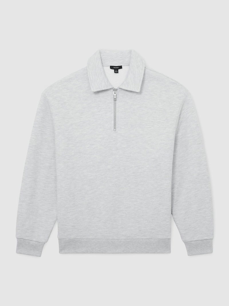 Cotton-Blend Heavyweight Zip Sweatshirt In Grey Melange