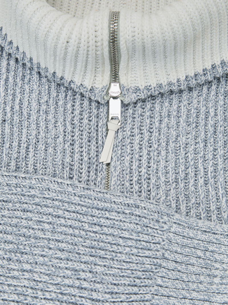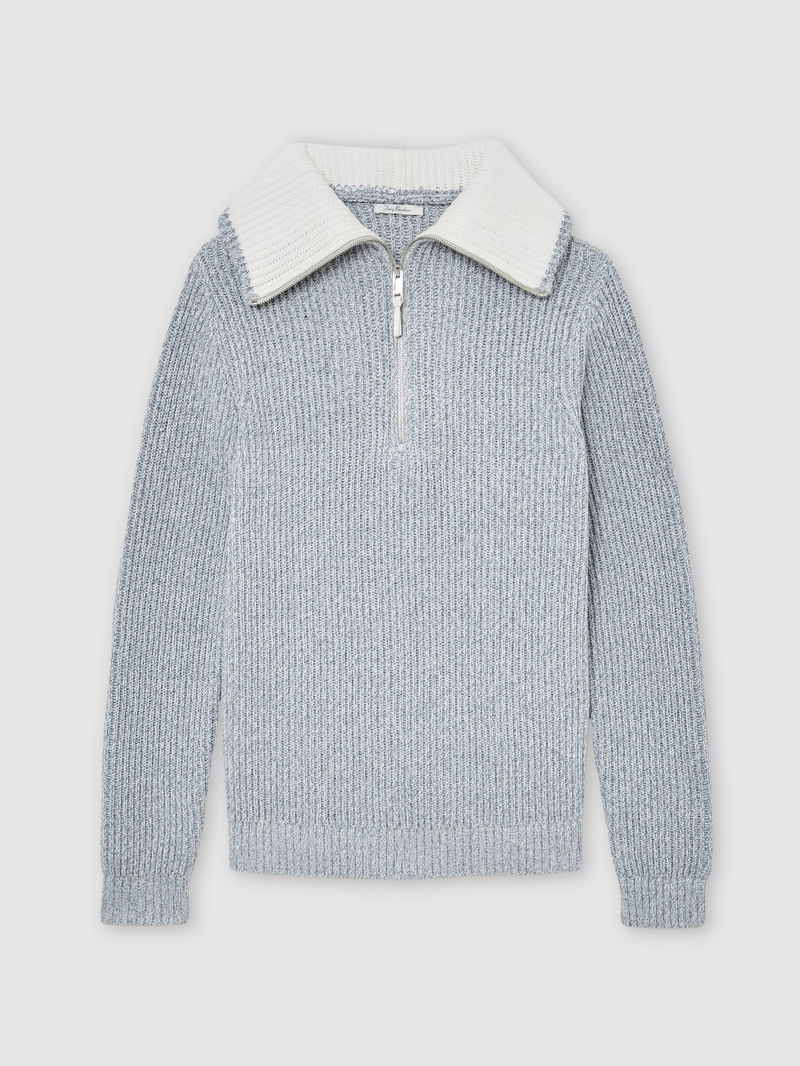 Cotton-Blend Rib-Knit Half-Zip Jumper In Soft Blue Twist