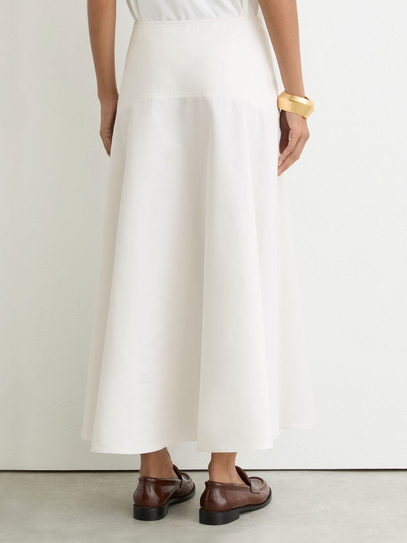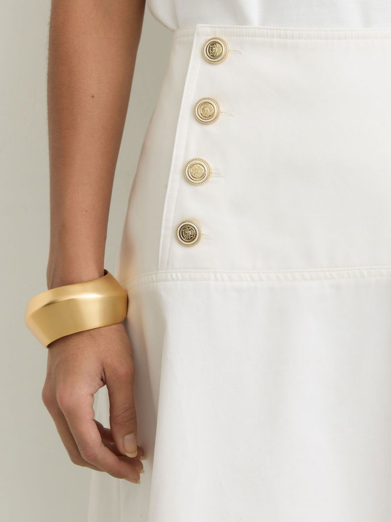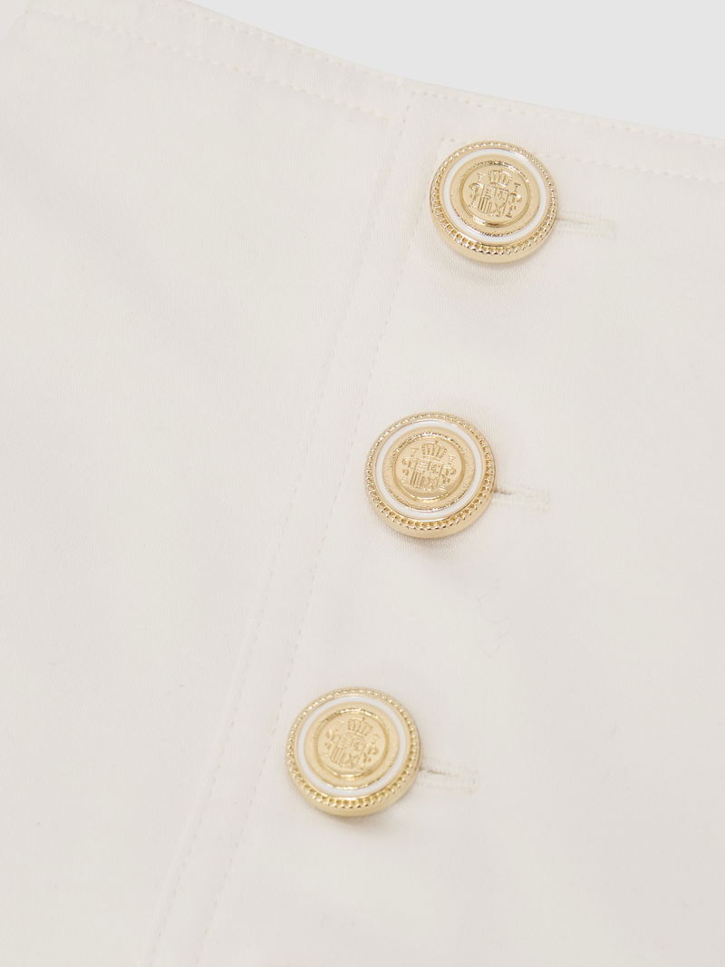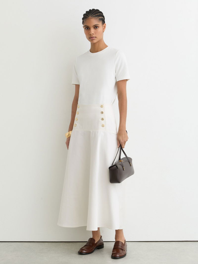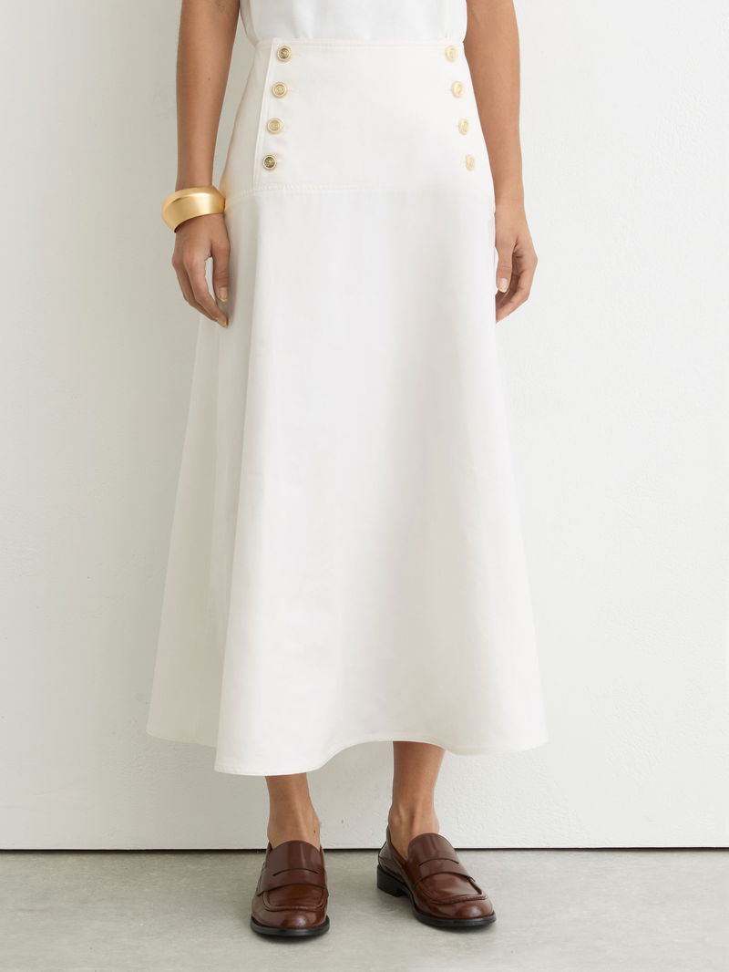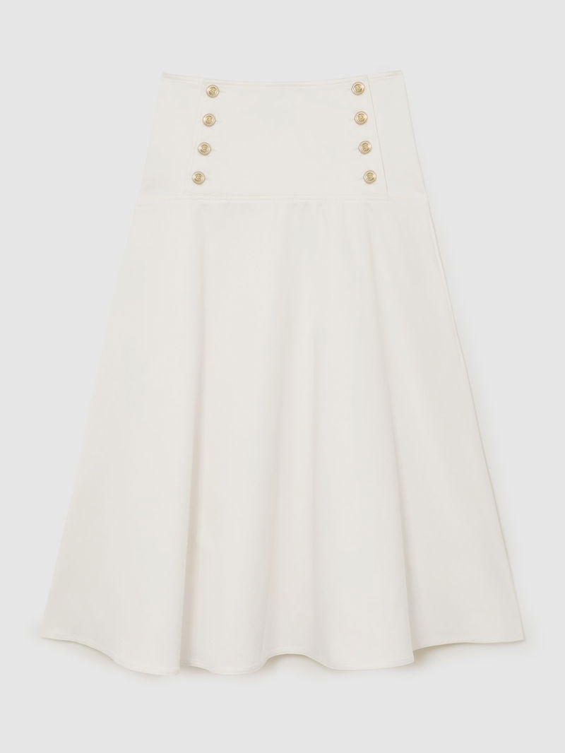 Cotton Button-Detail Midi Skirt In Ivory