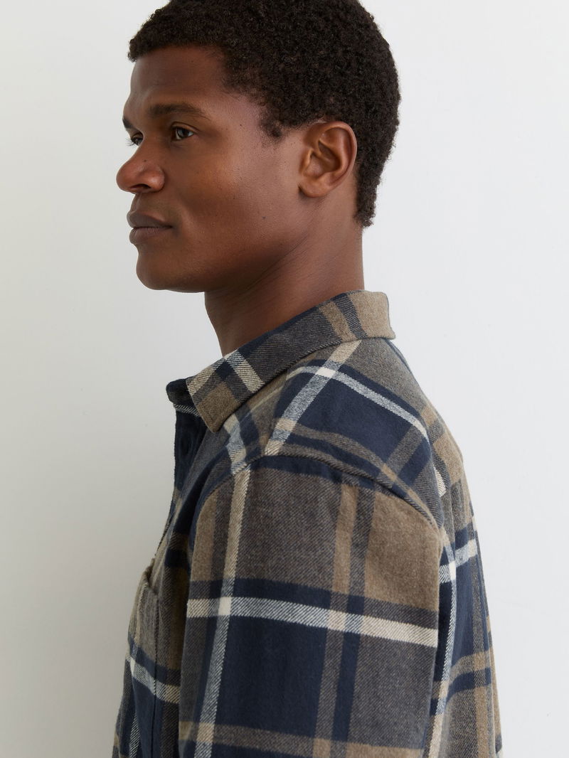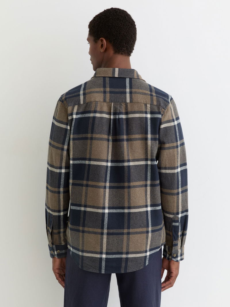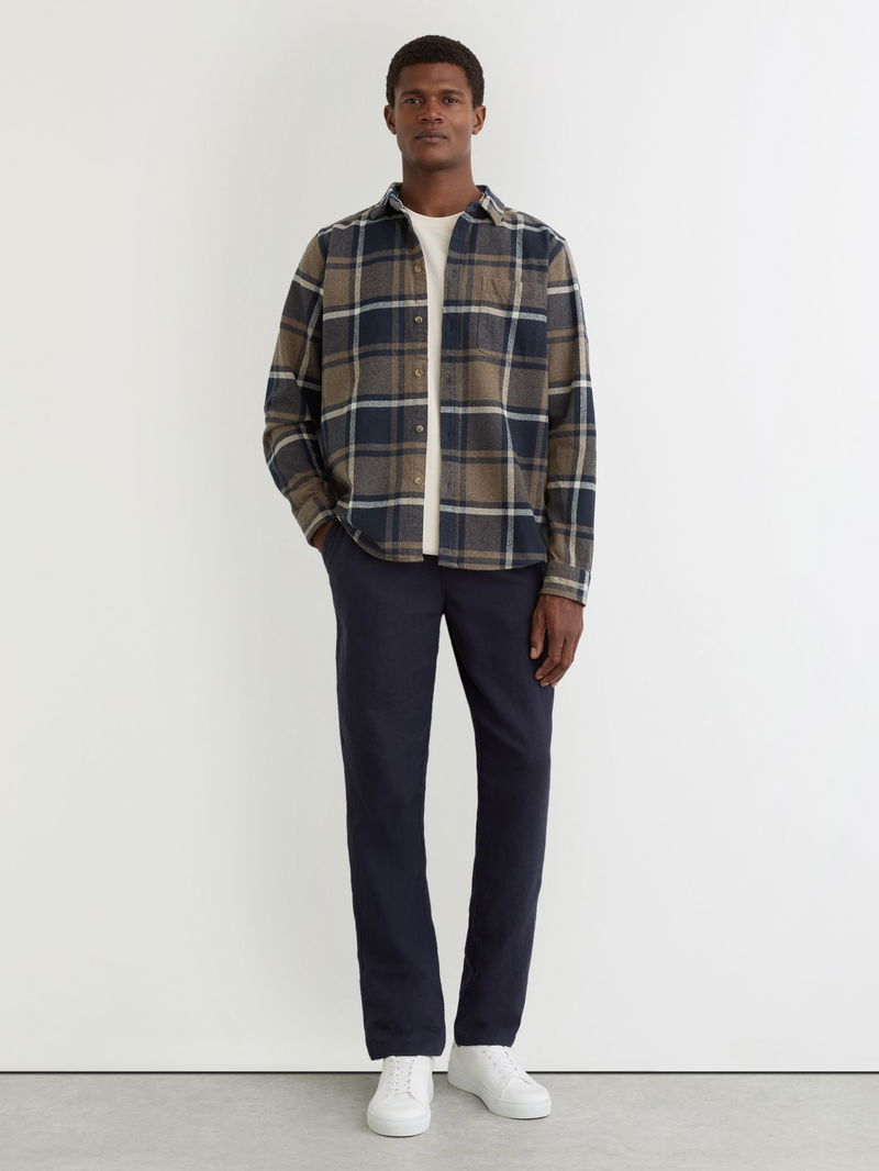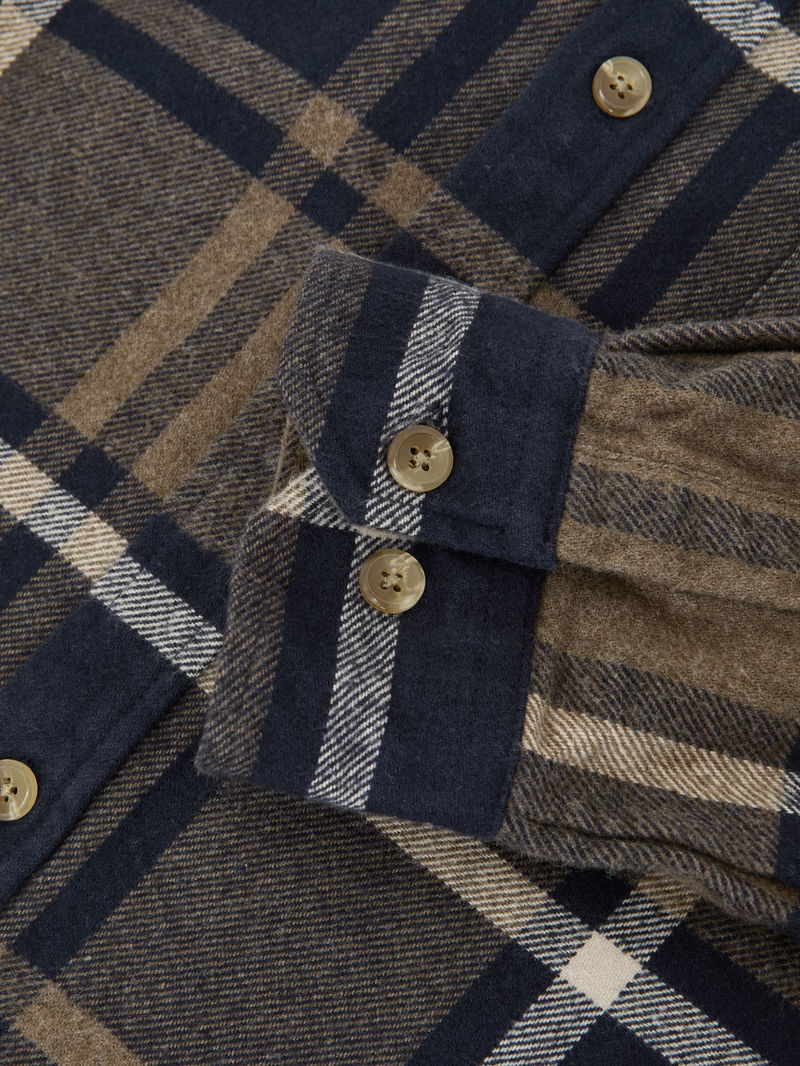 Cotton Check Flannel Shirt In Dark Navy