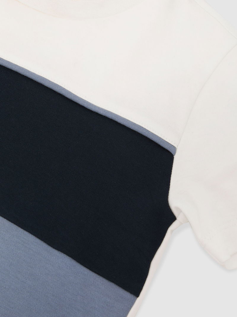 Cotton Colour-Block T-Shirt In Navy/Airforce Blue/Off White