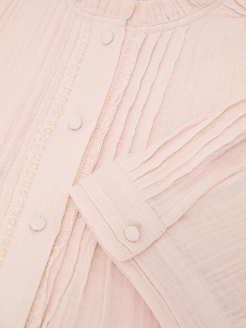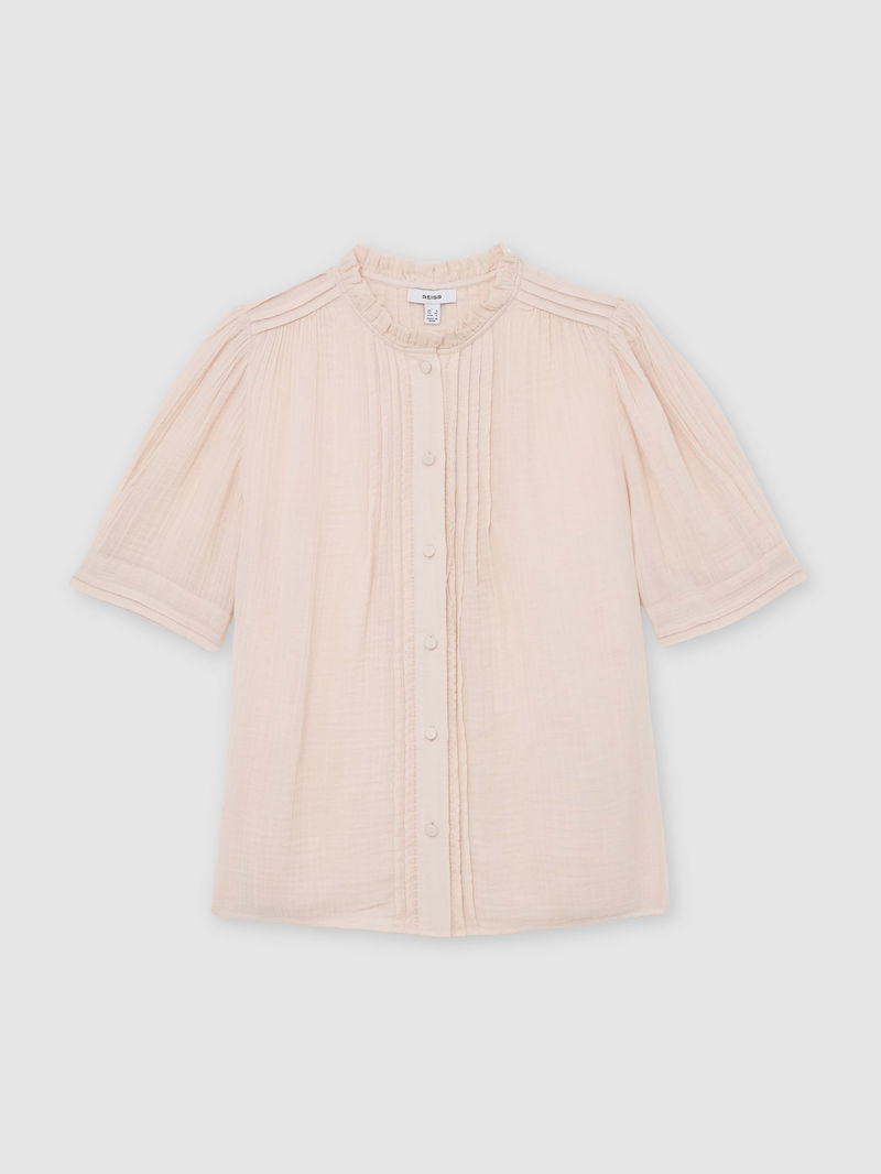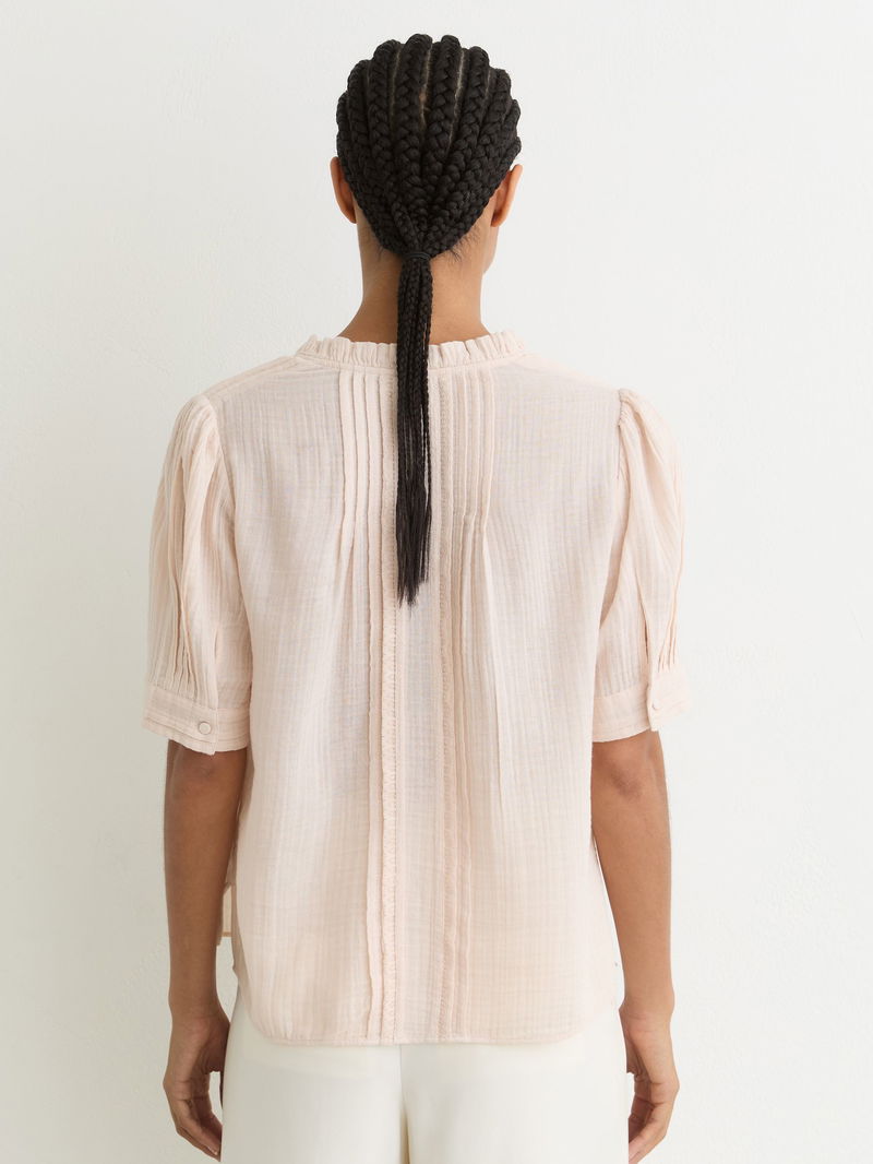 Cotton Muslin Frill-Neck Top In Pale Pink