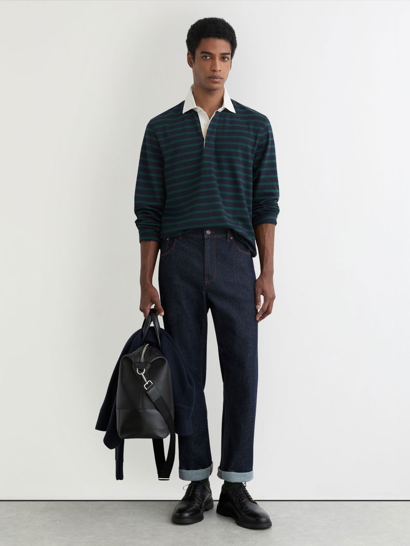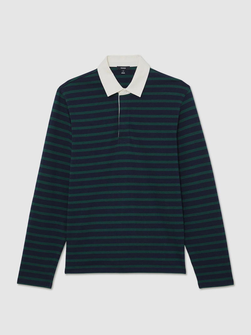 Cotton Rugby-Stripe Polo Shirt In Navy/Green