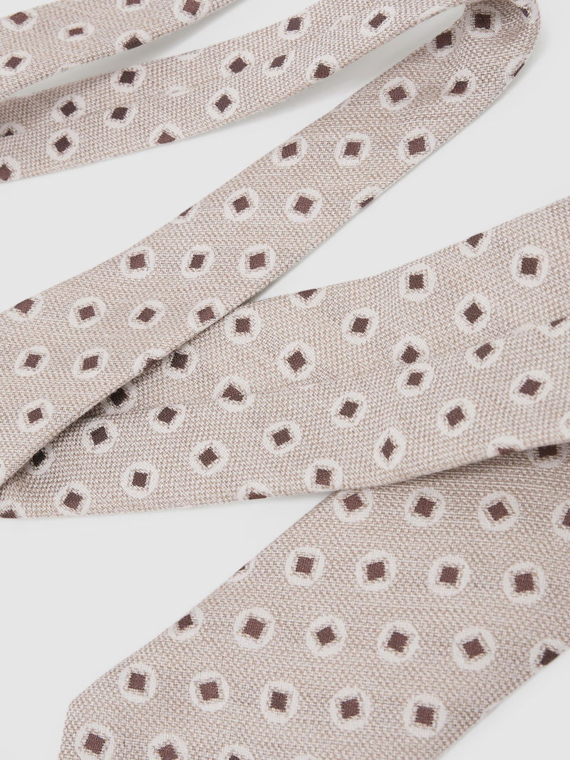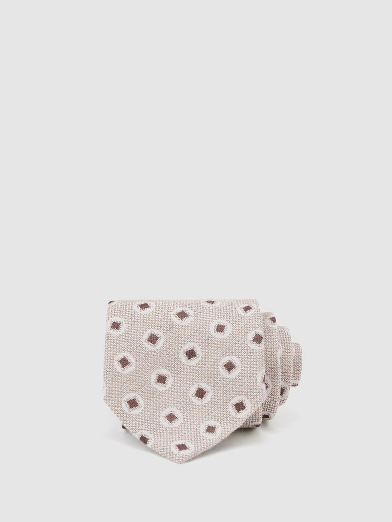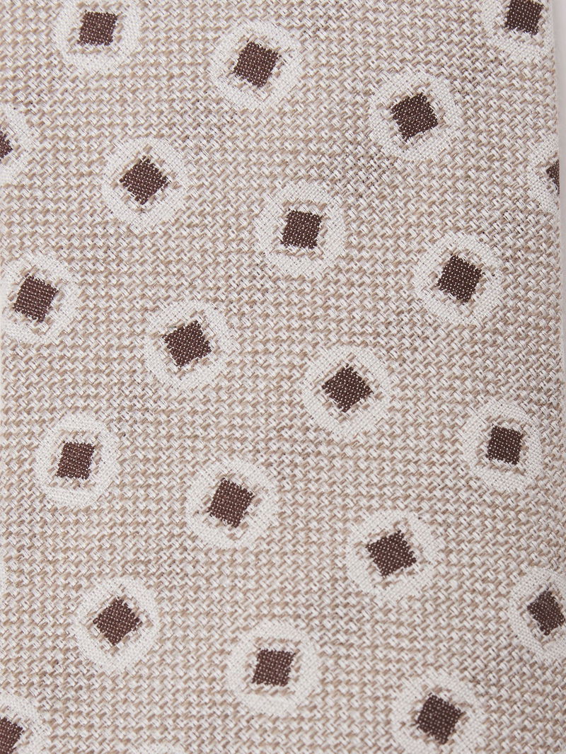 Cotton-Silk Square Medallion-Print Tie In Oatmeal / Chocolate Brown