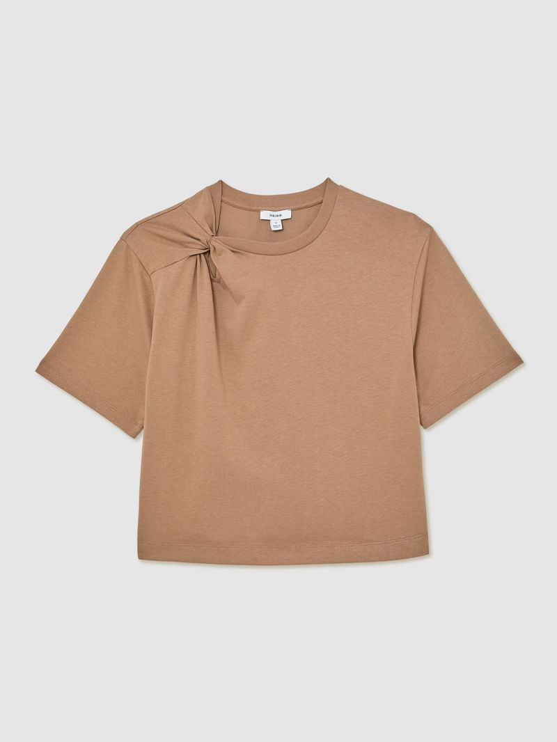 Cotton Twist-Detail Boxy T-Shirt In Taupe Brown
