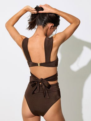 Removable padding offers customisable support, while adjustable shoulder straps and a self-tie back ensure a perfect fit. Bandeau style. Cut-out detail. Removable padding. Tortoiseshell-effect rings. Adjustable shoulder straps. Self-tie back.