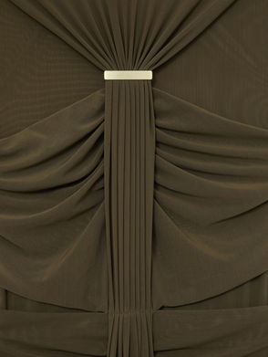 The Dark Green Vivienne dress is defined by bold cut-outs at the chest and back, complemented by a modern twist detail at the neck. Crafted from a compact knit with subtle rib details, its body-skimming fit creates a columnar silhouette that eases towards the hem for effortless movement.