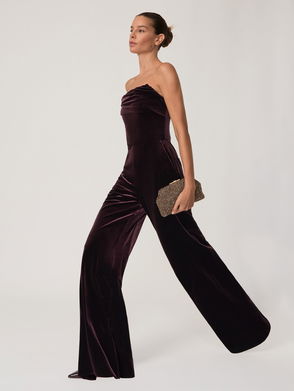 The Dori jumpsuit in black velvet will make a striking addition to any wardrobe. It's designed with a high-neck top and high-rise tailored trousers that fall to a wide-leg silhouette while its open-back design ensures it's a contemporary take on an eveningwear classic. Complete the look simply with heels and a clutch bag.