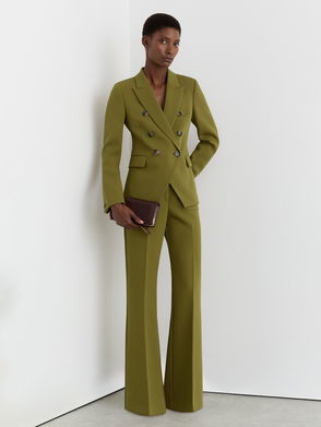 The Lily blazer is tailored from twill blended with wool for a structured yet refined feel. It features lightly padded shoulders, peak lapels, and a double-breasted front with crest-embossed buttons for a polished finish.
